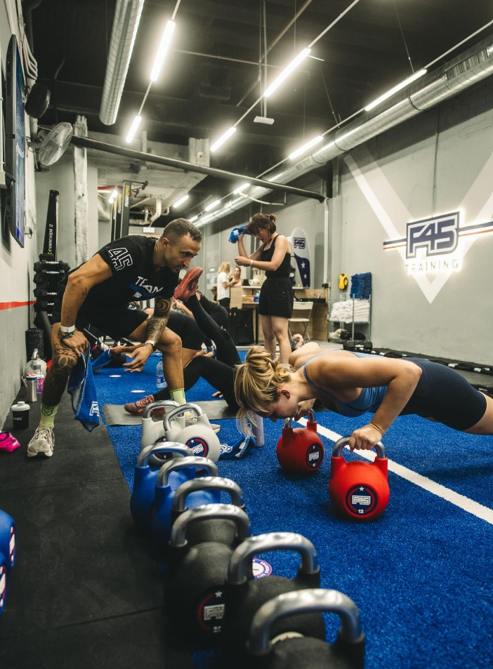 F45 propone entrenamientos de 45 minutos que combinan ejercicios funcionales, HIIT y fuerza. Cada clase, diseñada por el equipo global de la marca, ofrece variedad mediante más de 5.000 combinaciones posibles, lo que favorece la adherencia y previene la monotonía. Las sesiones son dirigidas por entrenadores certificados y respaldadas por pantallas interactivas que guían la ejecución de los movimientos en tiempo real.
